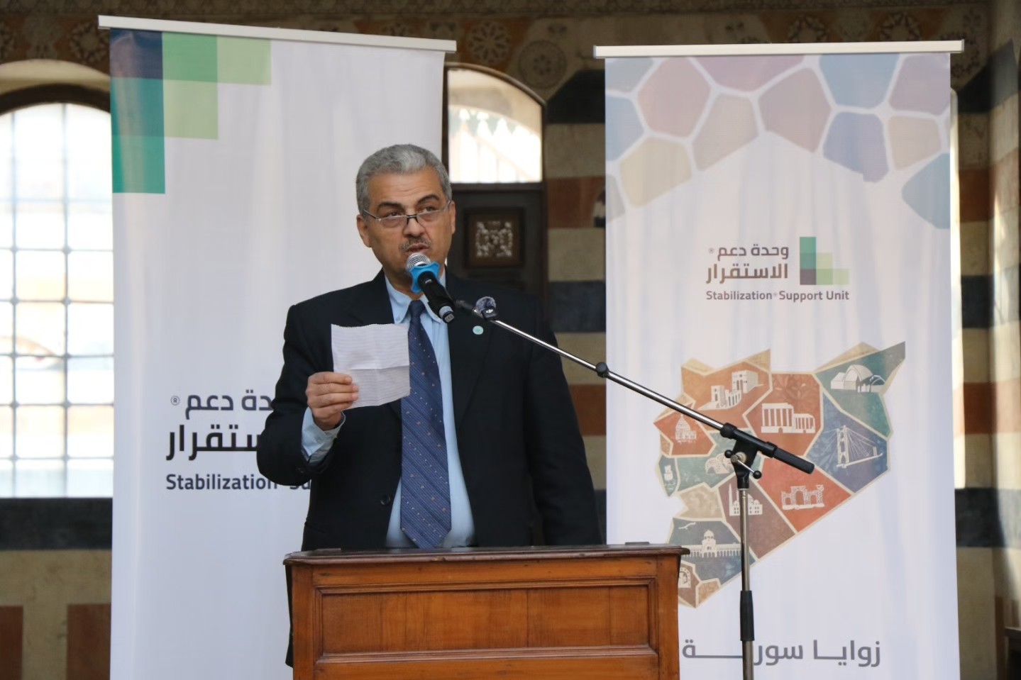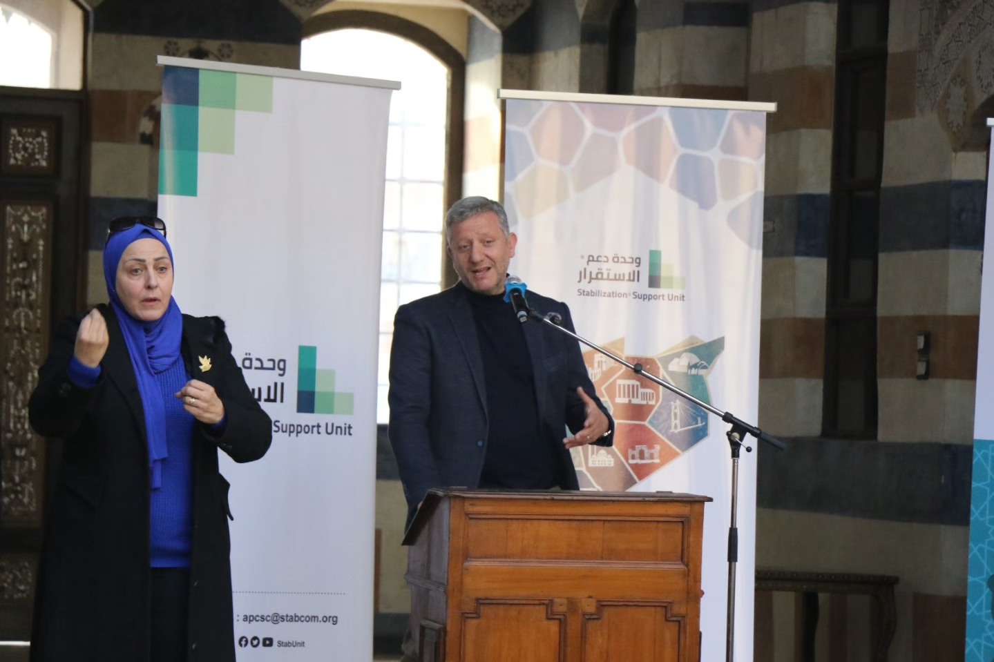 In the presence of a representative from the Syrian Ministry of Foreign Affairs and the Director of the American Affairs Department, Mr. Qutayba Idlbi, Mr. Nour Eddin Al-Baba, the spokesperson for the Syrian Ministry of the Interior, and Ms. May Brazi, the Advisor to the Minister of Social Affairs and Labor for displaced persons.