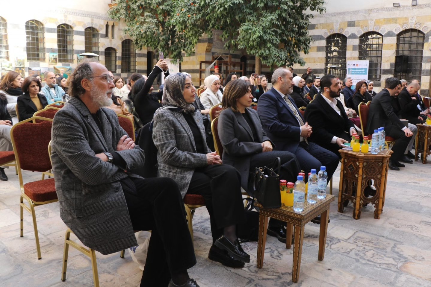 The opening day then transformed into a vibrant space filled with sounds, colors, and flavors. A choir performed selections from Syrian musical heritage, traditional crafts were showcased, reconnecting attendees with the roots of Syrian craftsmanship, and guests enjoyed dishes representing flavors from various cities and villages.