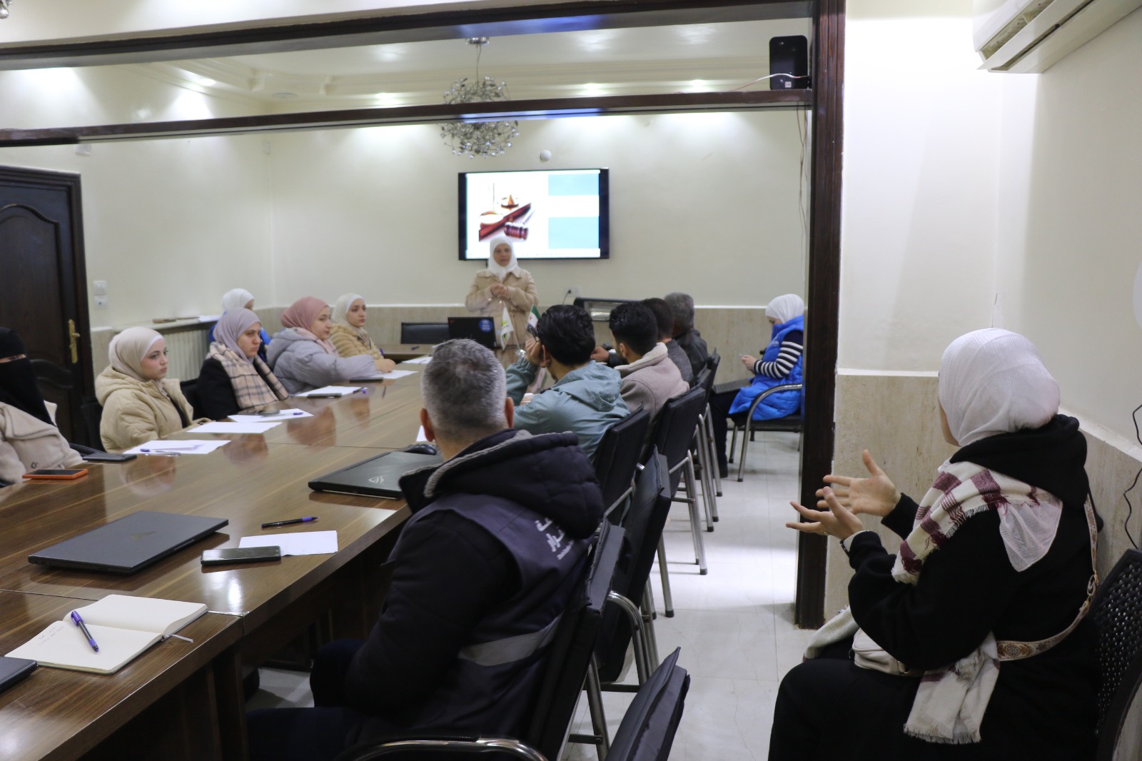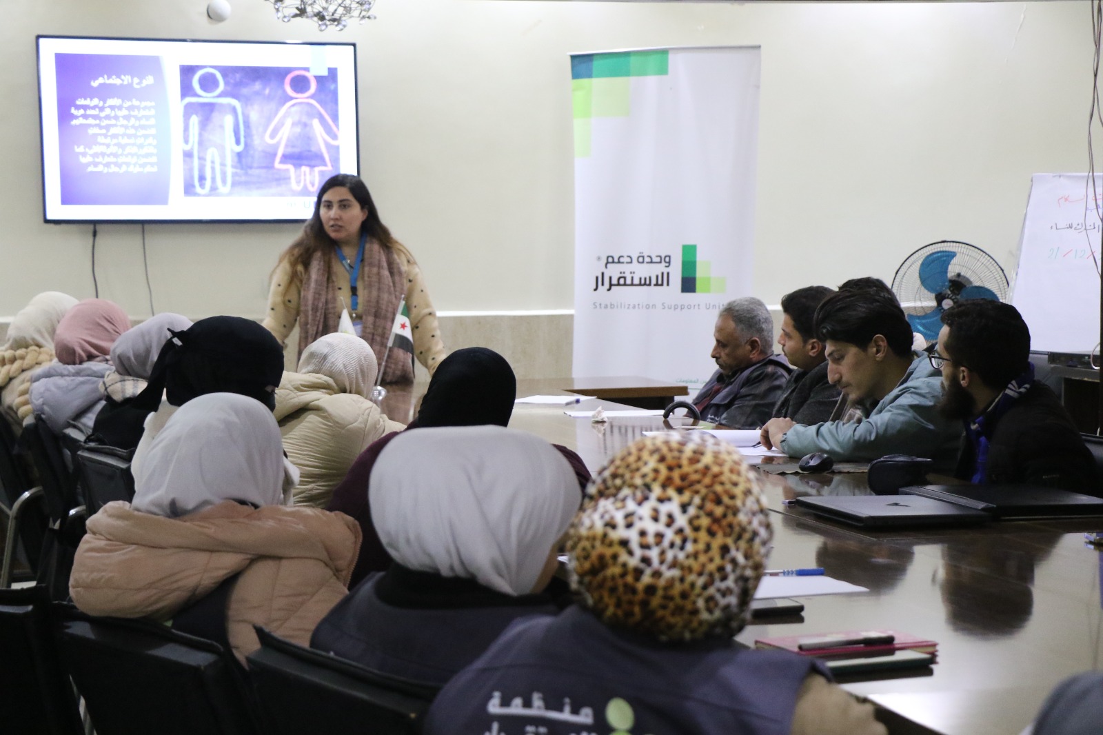 The training was conducted at the Stability Support Unit office in Aleppo, where participants were divided into two groups to ensure continuity of services within Aq Burhan Camp in Akhtarin without interruption.